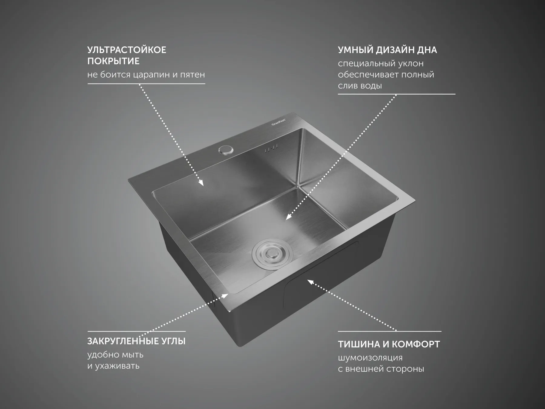 Мойка кухонная GranFest METAL 5045 нерж Нержавеющая сталь