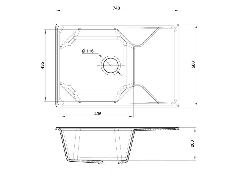 Мойка кухонная GranFest Серая Unique U--740 L сер