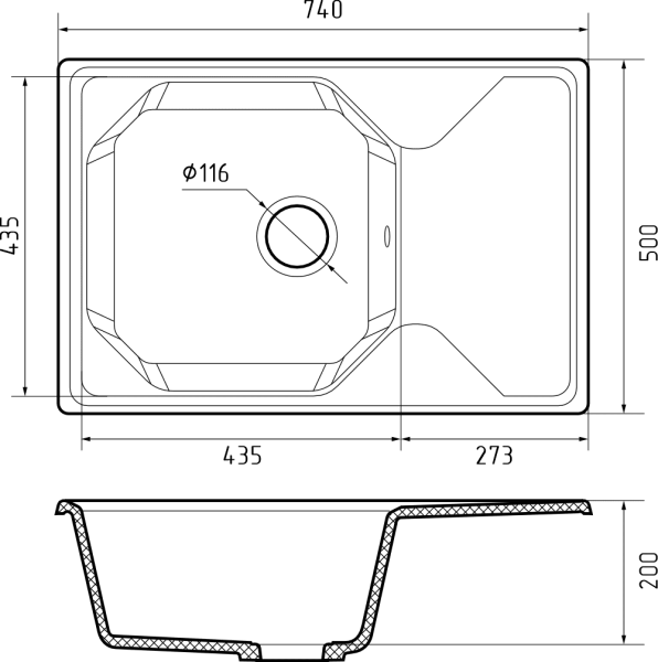 Мойка кухонная GranFest UNIQUE U-740L песочный