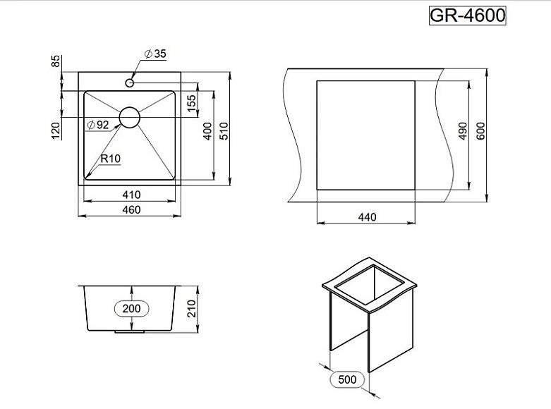 Мойка кухонная Granula 4600, СТАЛЬ САТИН Подробнее