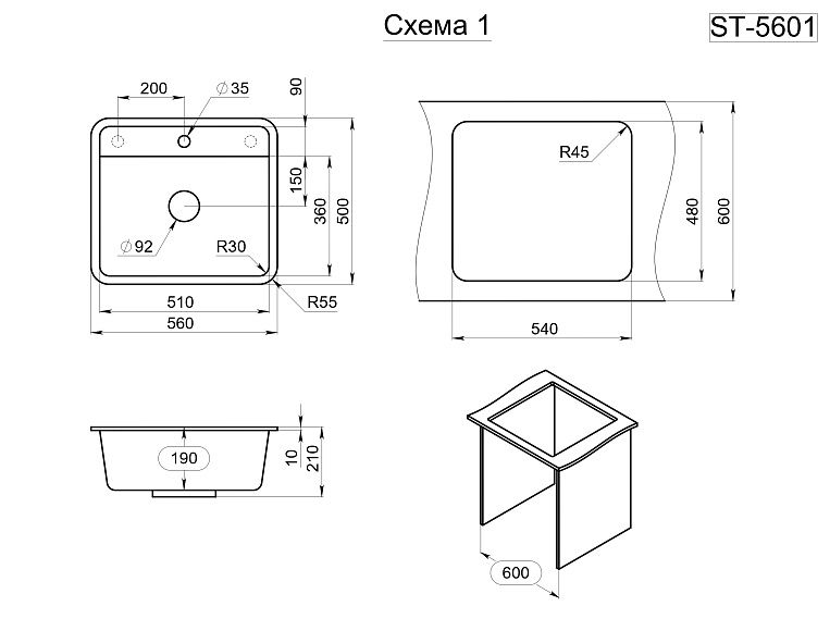Мойка кухонная Granula 5601, БАЗАЛЬТ Подробнее