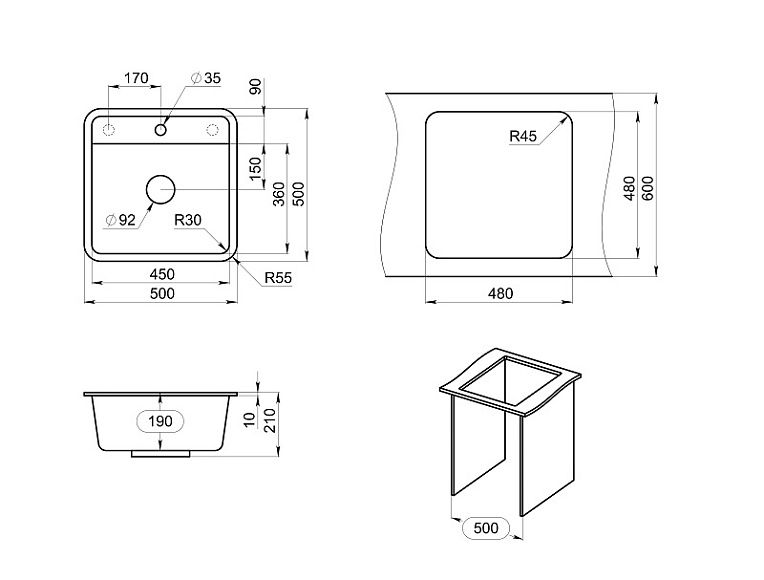 Отверстия под смеситель:1