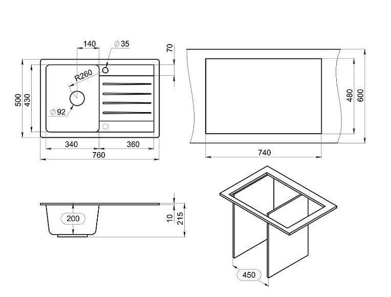 Мойка кухонная Granula Standart 7602, БАЗАЛЬТ