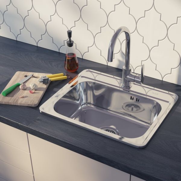 Стальная мойка Basic с блестящей полированной поверхностью размером 53х43 см и глубиной 18 см.
