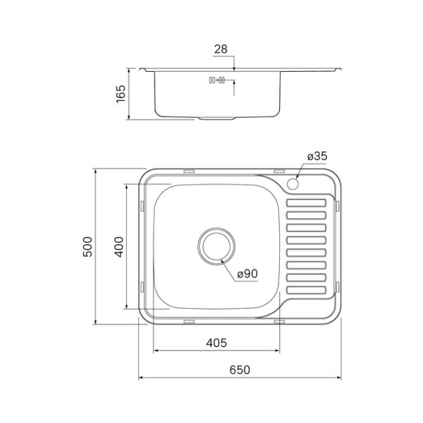 Стальная мойка Basic с матовой сатиновой поверхностью размером 65х50 см и крылом, на котором удобно сушить вымытую посуду, овощи или фрукты. Чаша глубиной 17 см расположена слева.