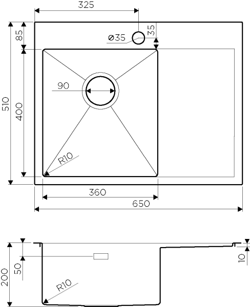 • Отверстия под смеситель: