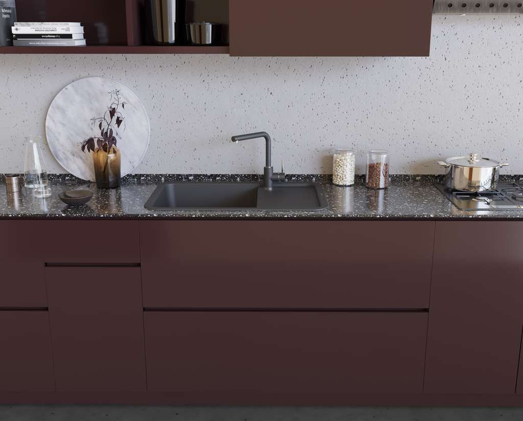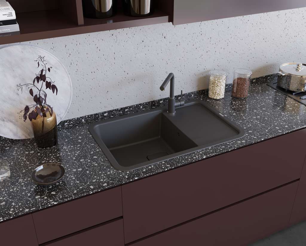 • За счет инновационных добавок в составе композитного материала, ARTGRANIT® имеет гладкую поверхность и очень плотную структуру, не позволяющую каплям жидкости и грязи проникать глубоко внутрь мойки, отталкивая частицы воды.