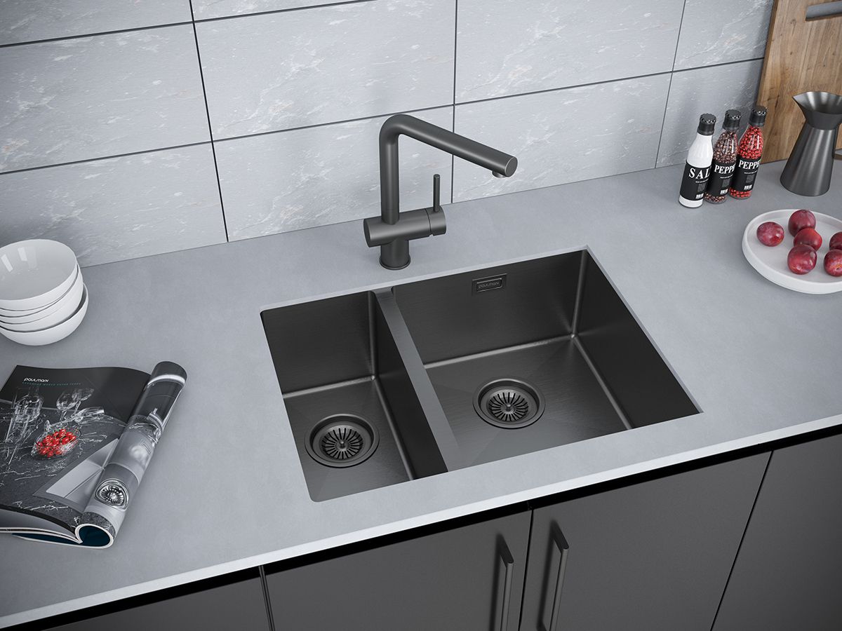 Мойка кухонная Paulmark Annex PM545944-GMR правая воронёная сталь купить