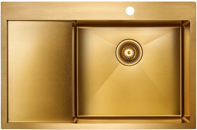 Мойка кухонная из нержавеющей стали, артикул PM807851-BGR304-ая аустенитная нержавеющая сталь имеет низкое содержание углерода. В составе мойки содержится 18% хрома и 8% никеля, что делает данную мойку из нержавеющей стали не подверженной деформации и обеспечивает прекрасные эксплуатационные характеристики.Мойки ELDE в оттенках BG и GM имеют прочное PVD покрытие, которое нанесено на нержавеющую сталь. Оно особенно устойчиво к появлению царапин и истиранию, не содержит микротрещин и является экологически чистым.Имеет функциональное плоское крыло;Имеет шумопоглощающее покрытие Stille® на внешней стороне чаши;