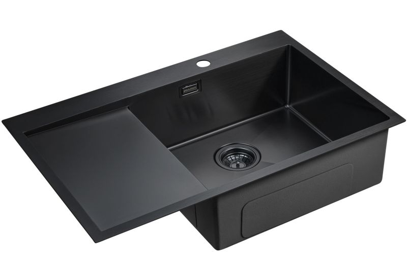 Мойка кухонная Paulmark Elde PM807851-GMR правая воронёная сталь купить