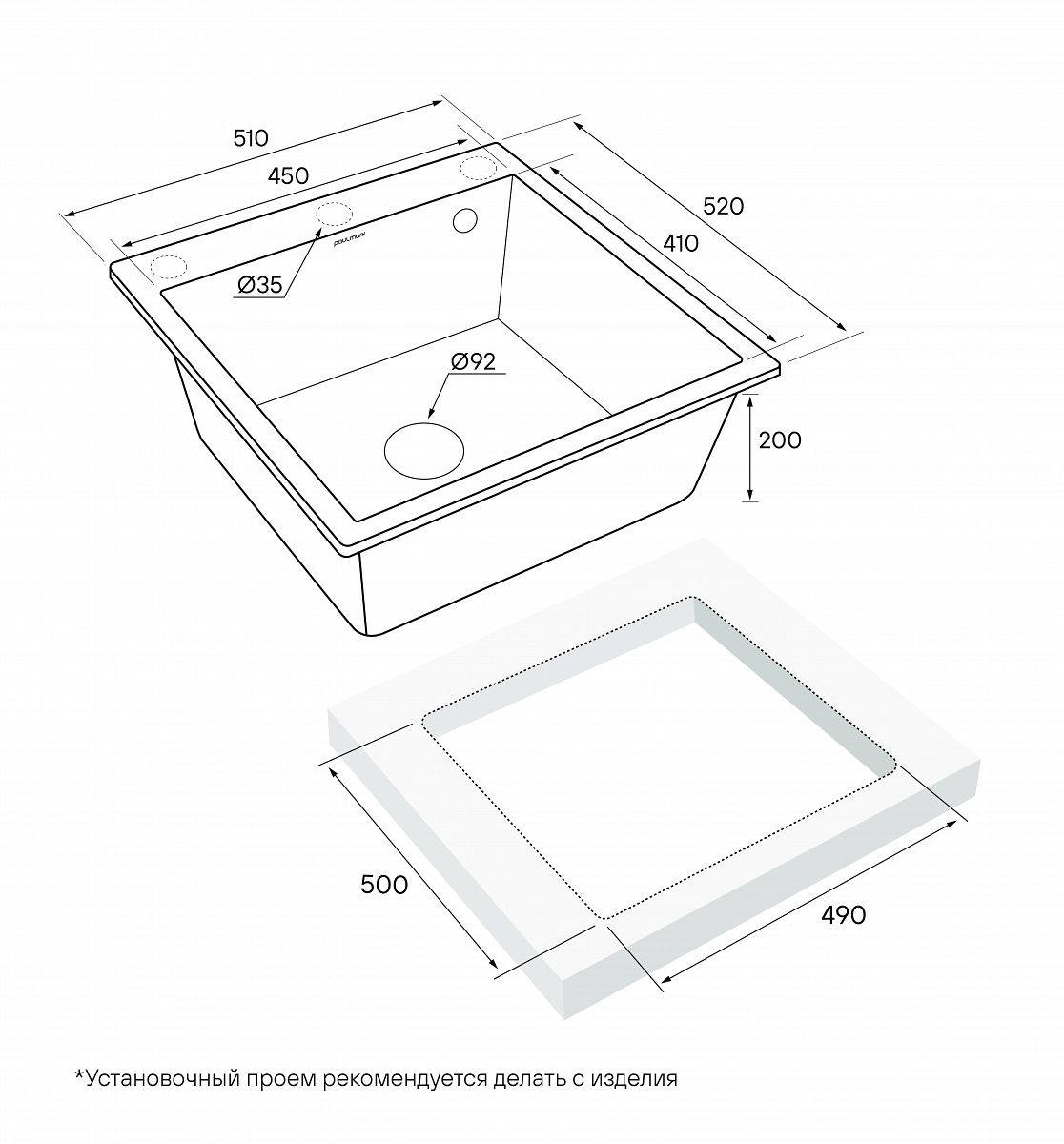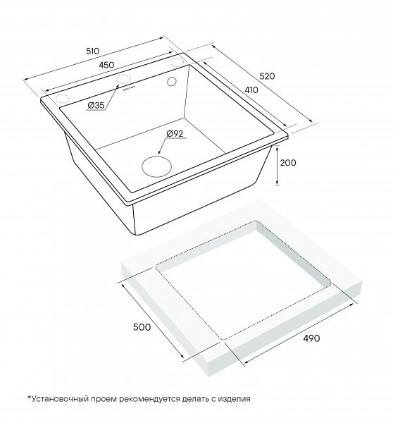 Мойка для кухни, артикул PM105152-ANСтильная и прочная мойка из искусственного гранита для создания комфортной рабочей зоны на вашей кухне.Мойка KANTE 50, изготовленная из искусственного гранита под брендовым названием IT-GRANIT, это: