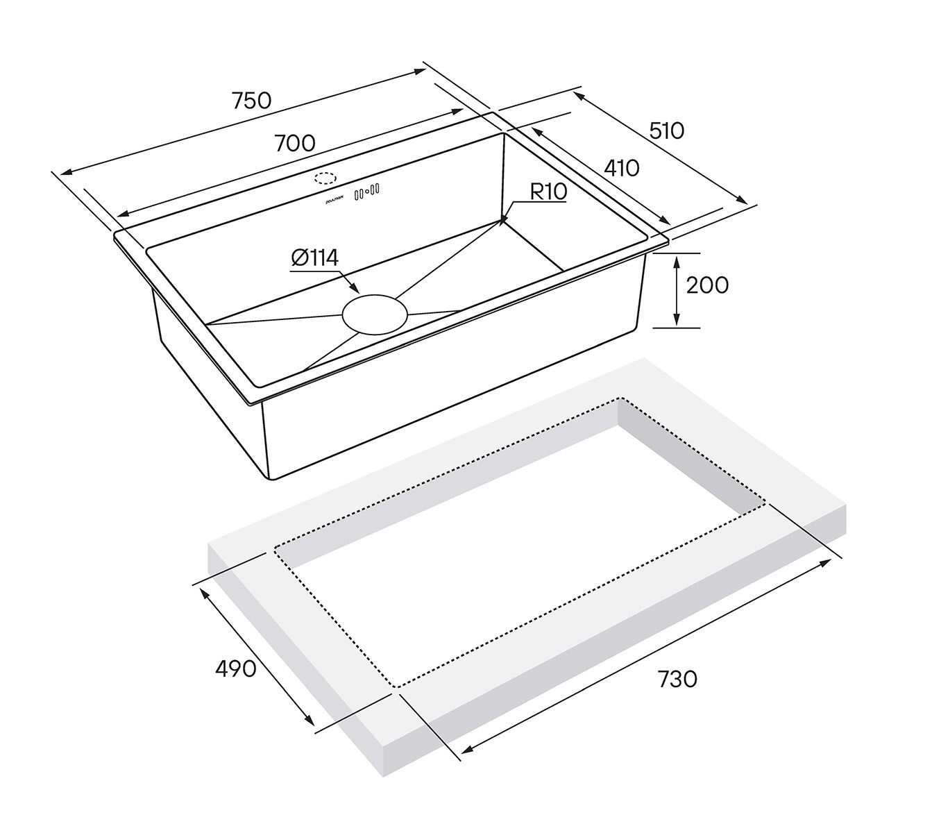 Мойка кухонная Paulmark Kroner PM217551-BS брашированная нержавеющая сталь