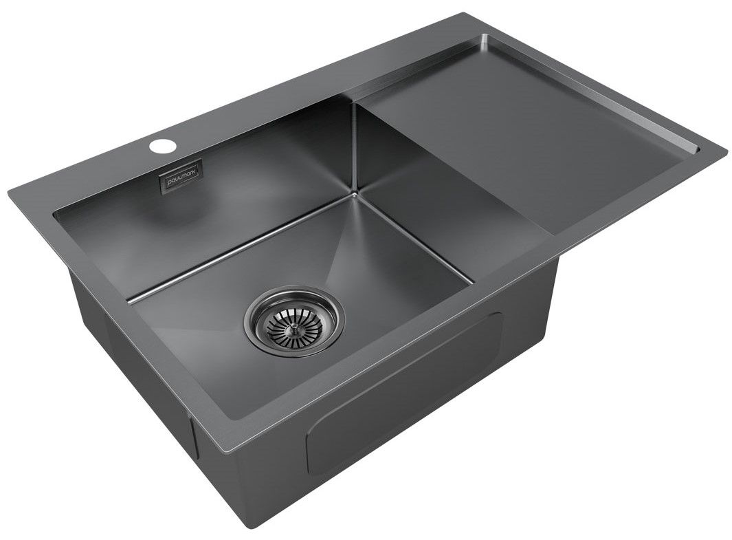 Мойка кухонная Paulmark Kroner PM217851-GML левая воронёная сталь купить