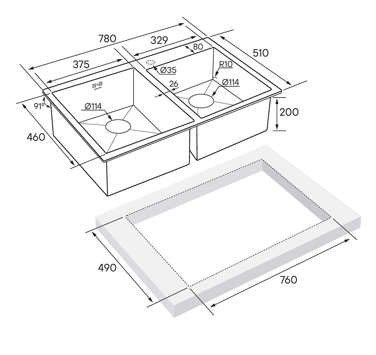 • Отверстия под смеситель:
