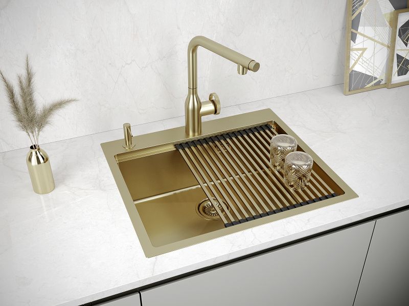 Мойка кухонная из нержавеющей стали, артикул PM705951-BGИзготовлена из нержавеющей стали, обладающей высокой коррозионной стойкостью, большим запасом механической прочности, а также устойчивостью к воздействию кислот и других химически активных соединений.Готовое отверстие для кухонного смесителя и дозатора.Имеет шумопоглощающее покрытие Stille® на внешней стороне чаши;