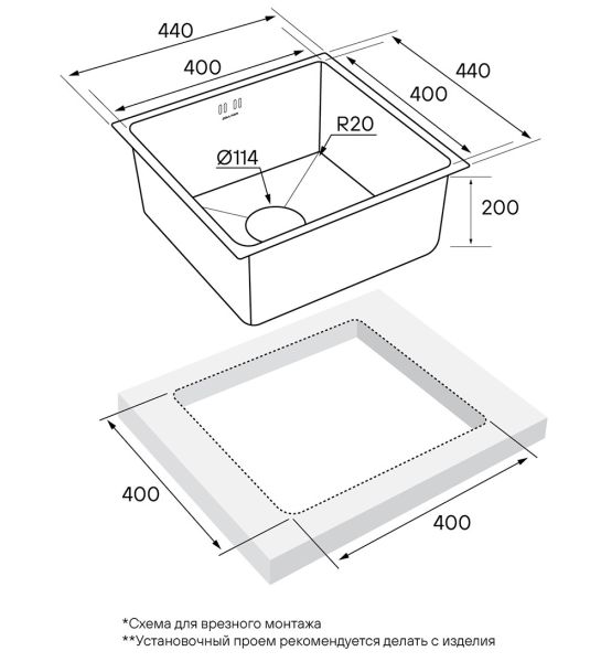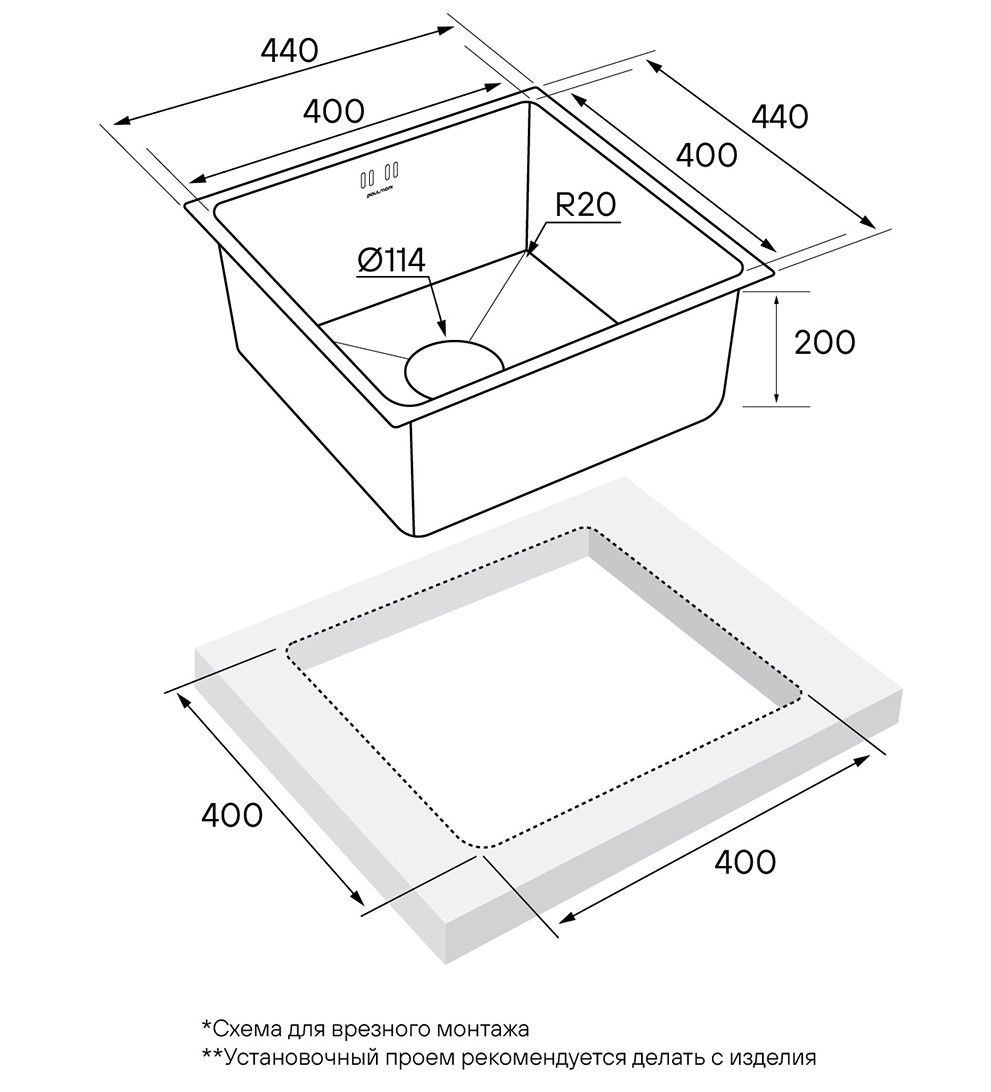 Мойка кухонная из нержавеющей стали, артикул PM304444-BGИзготовлена из 304-ой аустенитной нержавеющей стали, имеющей низкое содержание углерода. Нержавеющая сталь AISI 304 легирована 18% хрома и 8% никеля, что делает данную мойку не подверженной деформации и обеспечивает прекрасные эксплуатационные характеристики.Не подвержена деформации;