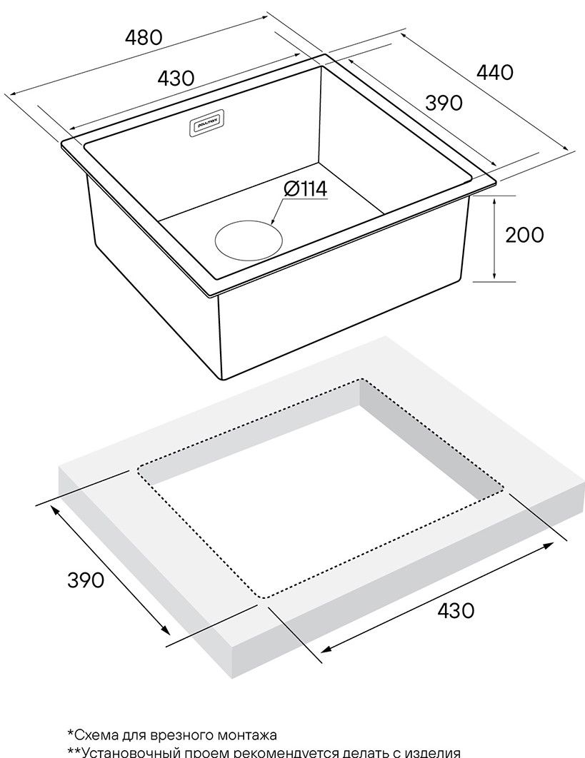 • Отверстия под смеситель: