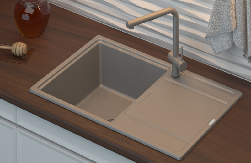 Мойка кухонная Point Лаура PN3005BG 78 см светло-бежевыйПрактичная мойка компактного размера с глубокой оборачиваемой чашей. Удобная в использовании и простая в уходе! Устойчива к царапинам, абразивам, а также к механическим ударам. Легко моется и не боится пятен. Устойчива к высоким температурам и идеально прилегает к столешнице.Цвет - светло-бежевый