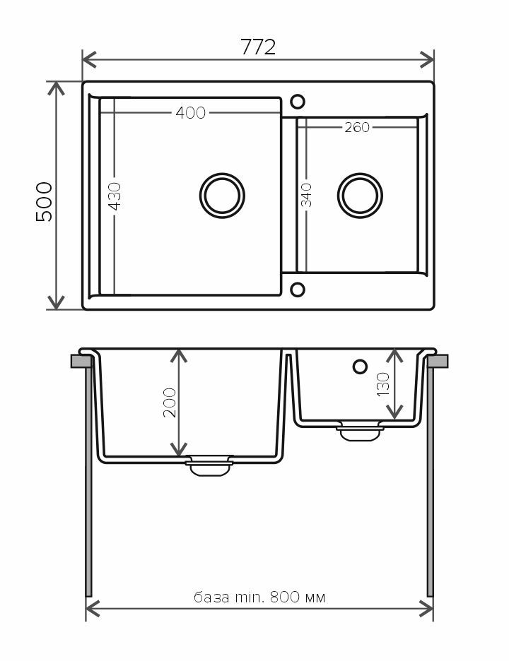 Отверстия под смеситель:нет