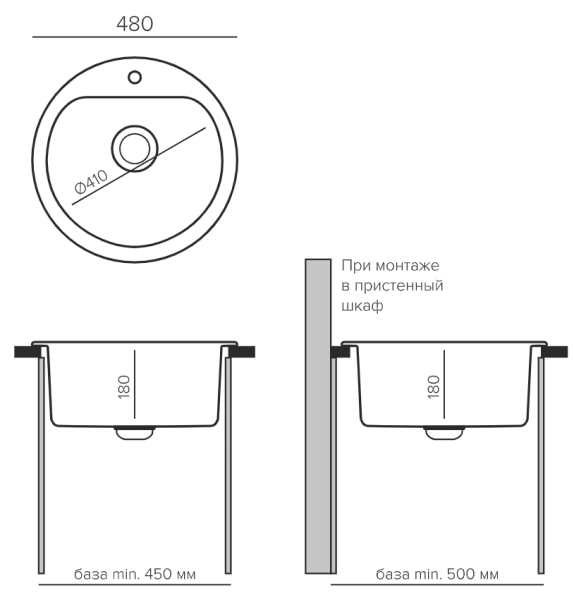 Кварцевая, врезная круглая мойка для кухни Bond-480, отличается максимально увеличенной чашей для данного размера. Внешний диаметр 480 мм., внутренний диаметр 410 мм, в которой вы с легкостью можете разместить большую и объемную посуду, при этом данная модель поместится даже на самой маленькой кухне. Модель имеет кипельно белый цвет без точек и вкраплений. Глубина мойки составляет 180 мм. Вмещается в кухонную базу от 45 см.( в случае, если ваша тумба крайняя, тогда минимальный шкаф 50 см.)Для вашего удобства имеется заводское отверстие для смесителя. В комплектации отсутствует сливная арматура, поэтому вы можете подобрать себе ту, которая нравится именно вам. Гарантия 3 года. В коллекцию QuartzBond вошли проверенные годами, не теряющие своей популярности, модели кухонных моек.Размеры мойки (ШхДхГ): 480х480х190 мм.