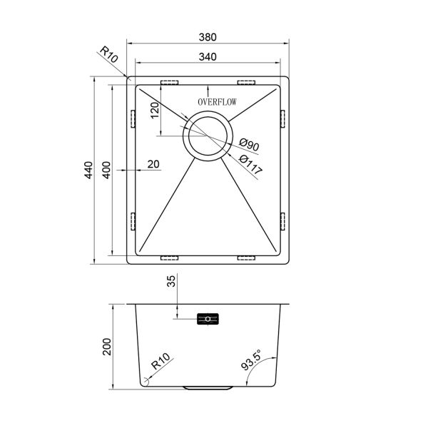 • Отверстия под смеситель: