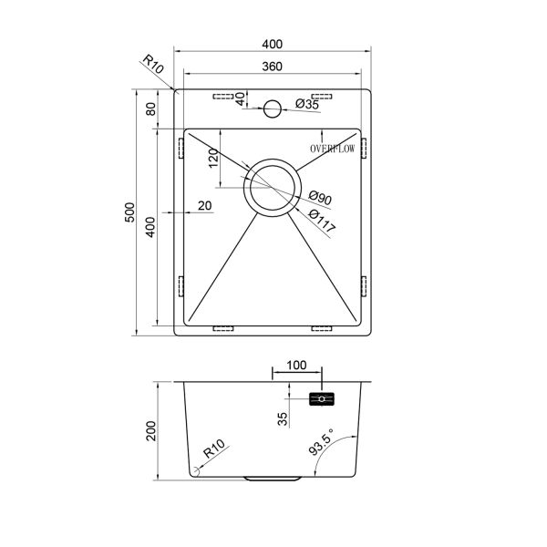 Размер чаши, мм: 320x400