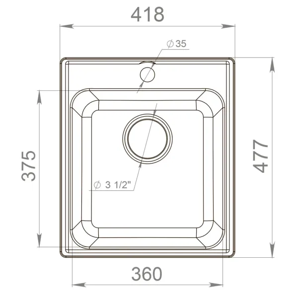 Размер чаши, мм: 360x375