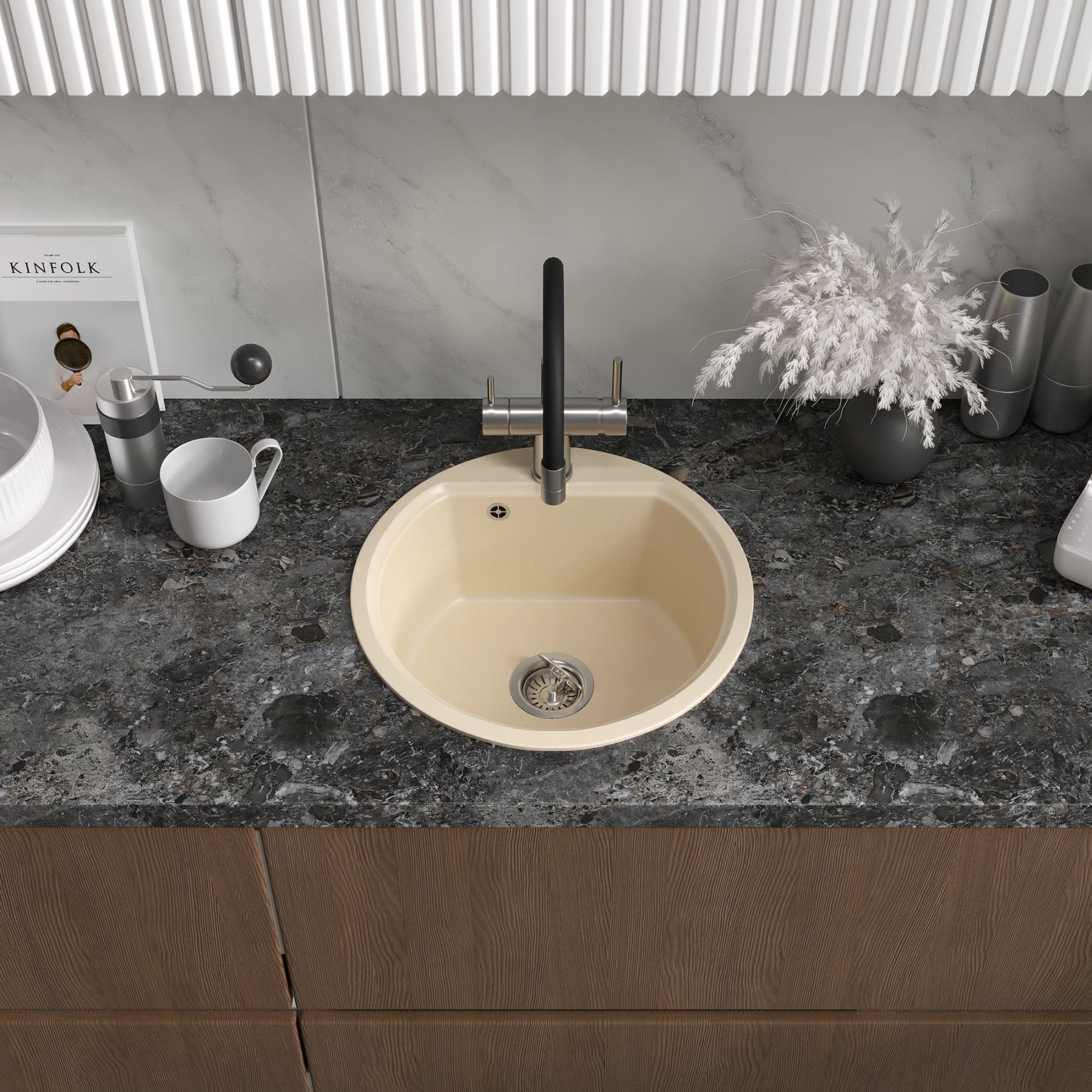 Удобная вместительная мойка подходит для установки как в угловой шкаф кухни, так и в прямые модули.