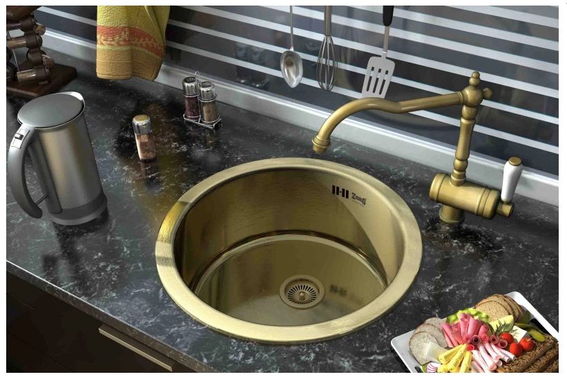 Мойка кухонная Zorg : чаша мойки выполнена из высококачественной легированной нержавеющей стали высококачественной нержавеющей стали с последующей специальной PVD-обработкой в цвет бронза. Данная модель прочная, устойчивая к царапинам, способна выдерживать высокие температуры. Форма: прямоугольная, цвет мойки -бронза.