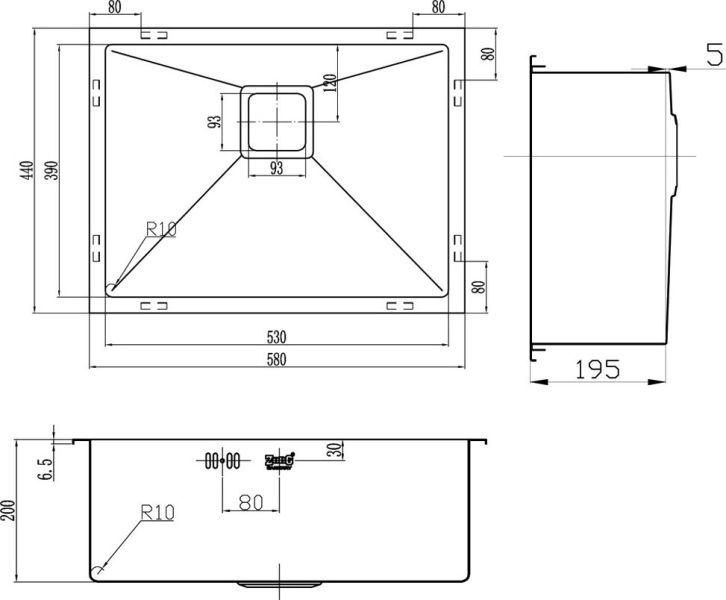 • Отверстия под смеситель: