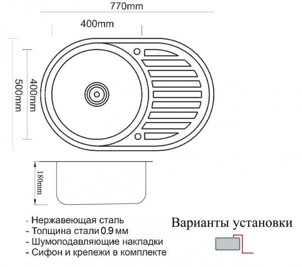 Мойка кухонная Zorg : чаша мойки выполнена из высококачественной легированной нержавеющей стали с последующей специальной PVD-обработкой в цвет графит. Данная модель прочная, устойчивая к царапинам, способна выдерживать высокие температуры. Функционально дополнит интерьер кухни. Конструкция призвана заметно облегчить привычные дела – от мытья посуды до разморозки продуктов. Сверху нанесено покрытие, которое придает глубокий цвет и обеспечивает защиту от преждевременного истирания. Толщина нержавеющей стали 1,5–3 мм и шумоподавляющие накладки делают модель практически бесшумной.