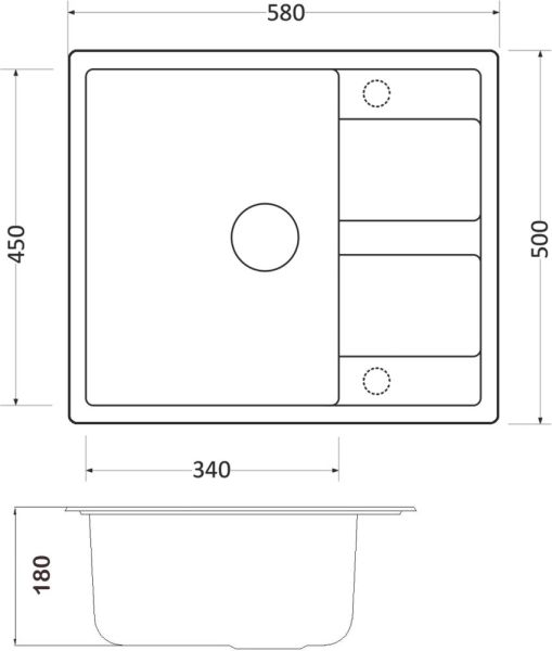 • Отверстия под смеситель: