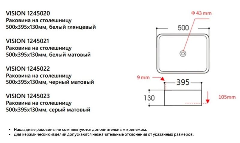 Накладная раковина Avimano Vision 1245021 50см белый матовый купить