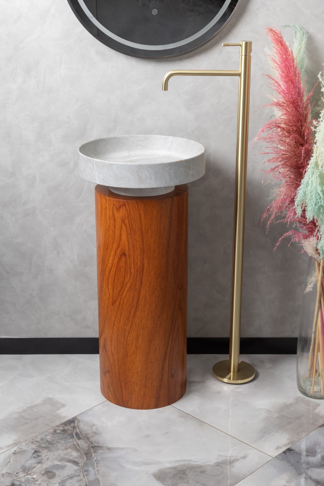 Накладная раковина с пьедесталом золото Armadi Art Sole Corian 801-GR+801-Base-Rwood Amani Grigio/красное дерево