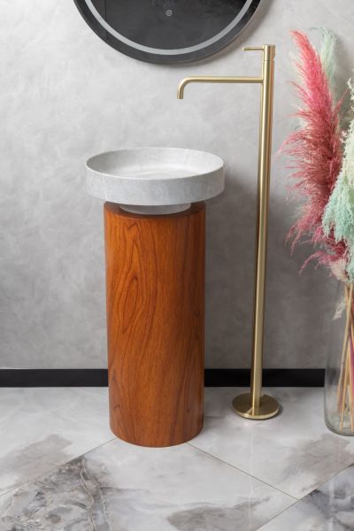Накладная раковина с пьедесталом золото Armadi Art Sole Corian 801-GR+801-Base-Rwood Amani Grigio/красное дерево купить