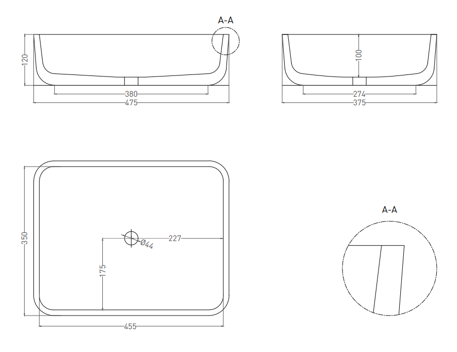 Накладная раковина Salini Gloria 09 S-Stone 1102209MRH 48см RAL снаружи