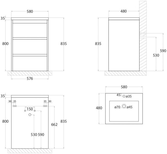Тумба под раковину Art&Max выполнена в современном стиле и прекрасно впишется в интерьер любой ванной комнаты. Напольная конструкция обеспечивает легкий монтаж и не требует специального ремонта в помещении. Модель оснащена тремя выдвижными ящиками с доводчиками. Фасад изделия выполнен из ЛДСП.Тумба может использоваться вместе с раковиной AM-LAV-580-MR-A.Раковина и смеситель в комплект поставки не входят и приобретаются отдельно.Особенности: