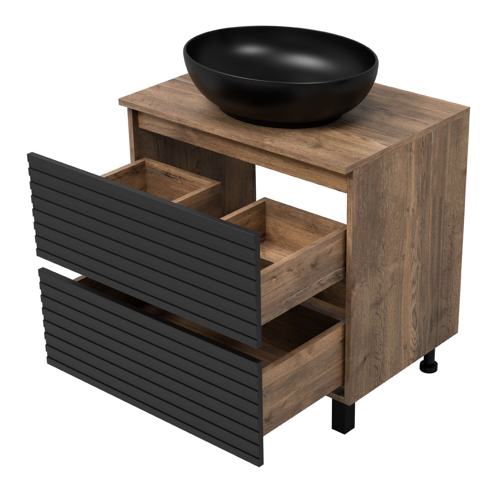 Напольная тумба под раковину Brevita Dakota DAK-07070-19/02-2Я 70см дуб Галифакс олово/чёрный