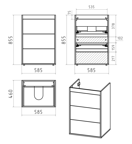 Напольная тумба под раковину Brevita Grafit GRA-01060-013Я под стиральную машину 60см графит