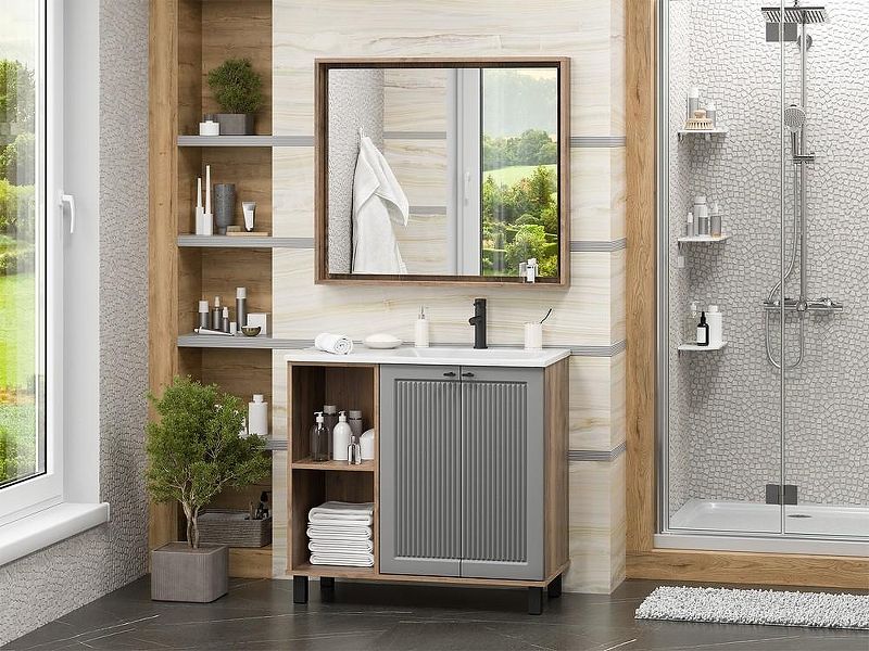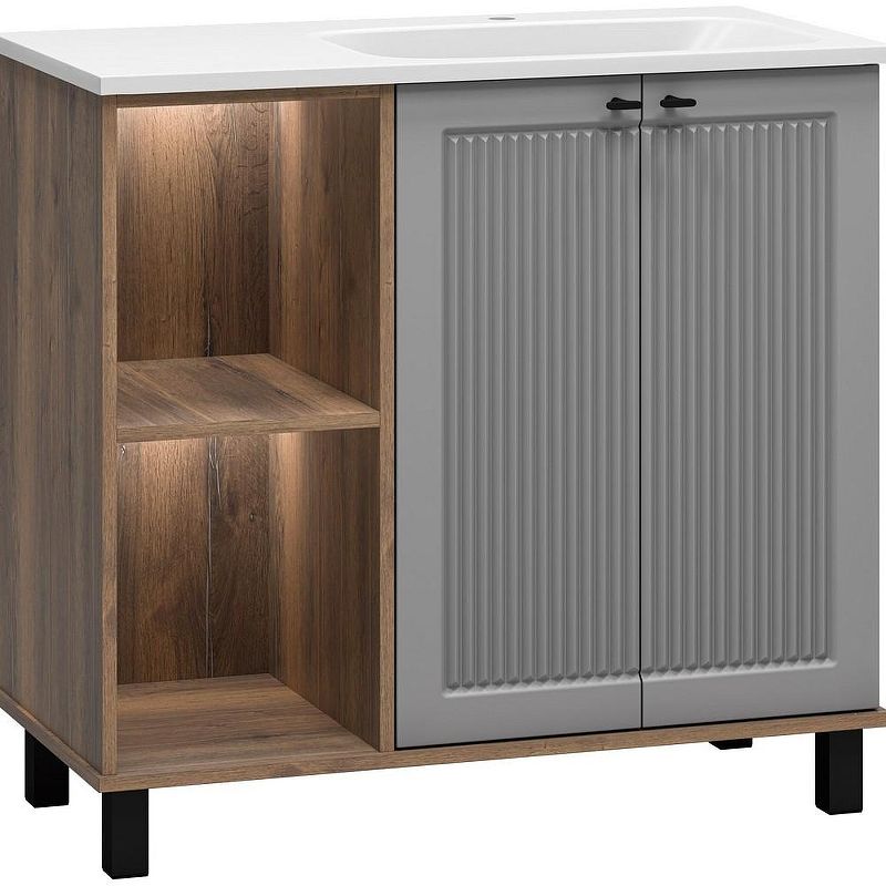 Напольная тумба под раковину Brevita Lumus 90 R УТ000025490 Серая матовая Дуб Галифакс олово Подробнее
