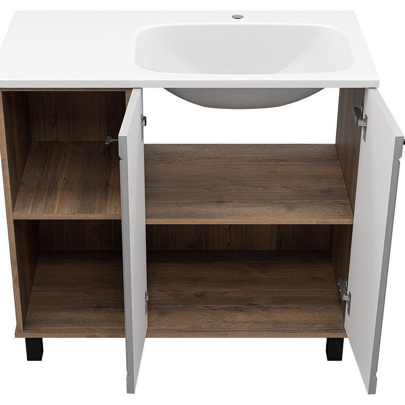 Система хранения: две распашные дверцы, открытые полки.