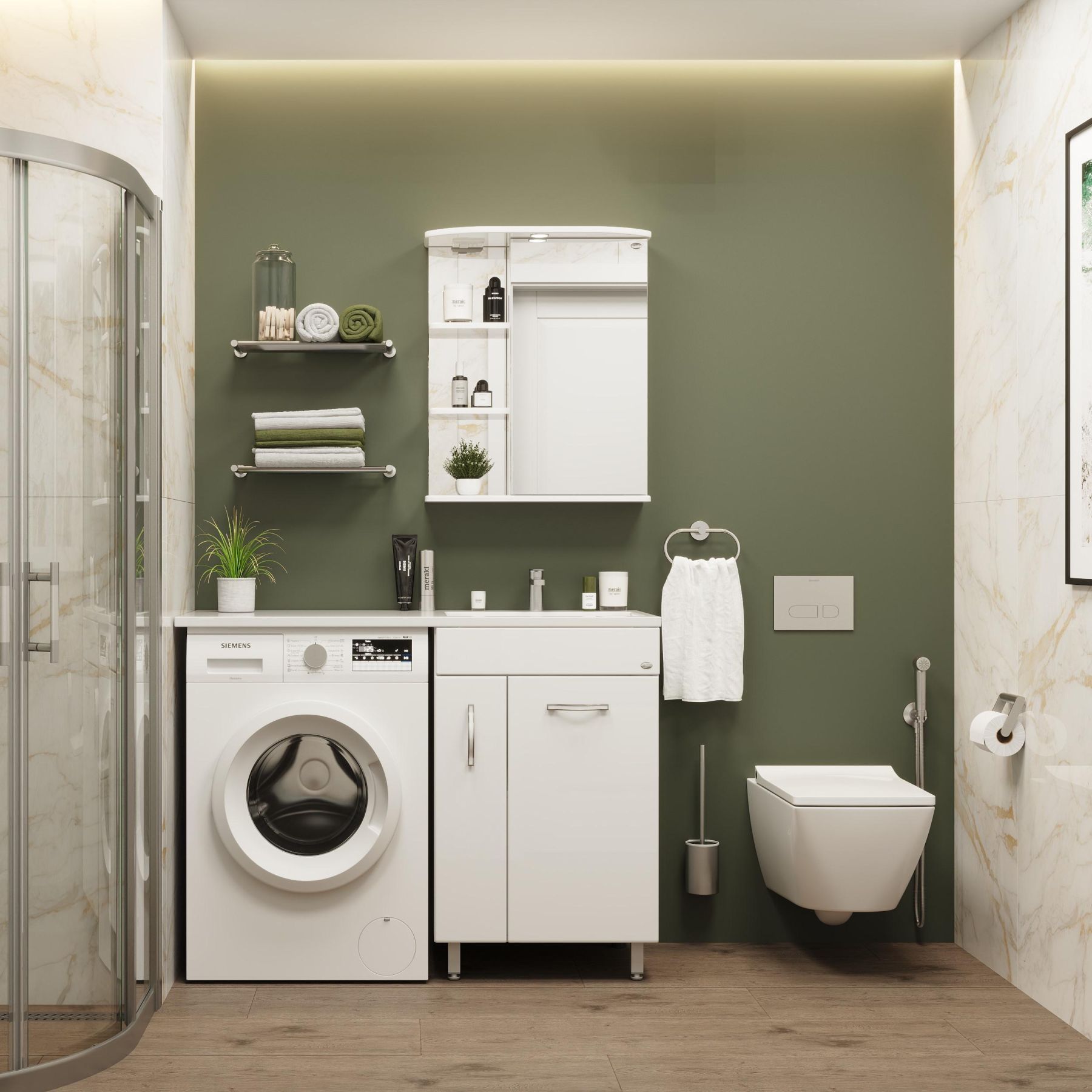 Напольная тумба Onika Нави 60 идеально подходит для небольших санузлов и станет прекрасным решением для совмещения со стиральной машиной.