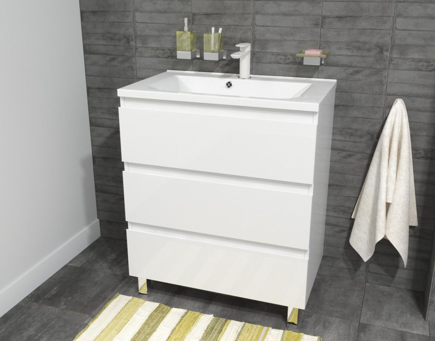 Современный дизайн серии Bali создан для ценителей минимализма. Четкие геометрические формы, бесшумное закрывание ящиков, вместительная тумба с верхним и нижним ящиками создает дополнительное пространство, где будут надежно скрыты от влаги банные принадлежности.