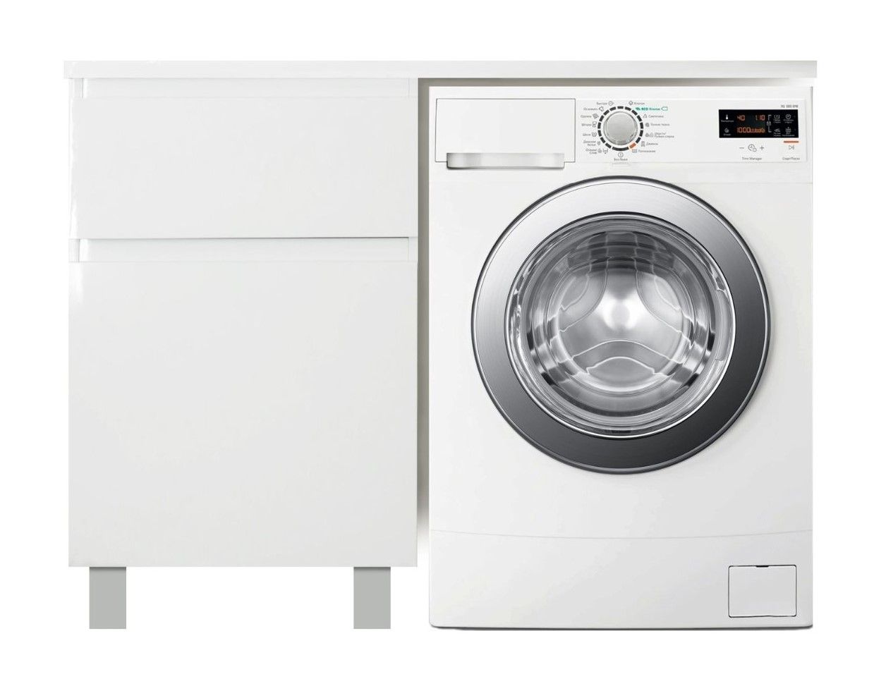 Коллекция мебели для ванной комнаты Dallas Luxe покоряет своей удивительной простой и функциональностью. Стильная лаконичная тумба, укомплектована раковиной из литьевого мрамора с удобной чашей. Стиральная машина устанавливается под столешницей, за счет чего экономит место в ванной комнате. В тумбе имеются два ящика. Нижний ящик тумбы – широкий и вместительный – предназначен для крупных предметов, а в верхнем имеется специальная организация пространства, позволяющая хранить мелкие вещи.
