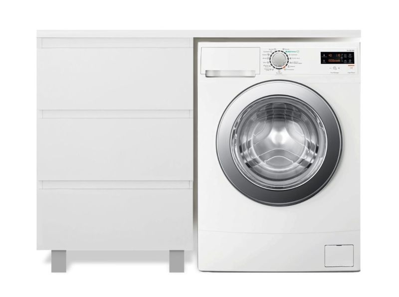 Приоритетом в выборе тумбы с раковиной является площадь ванной комнаты. Функциональная тумба с тремя ящиками решит вопрос для большинства покупателей. Тумба укомплектована раковиной из литьевого мрамора с удобной чашей, стиральная машина устанавливается под столешницей. Три ящика позволят распределить как крупные, так и мелкие вещи.