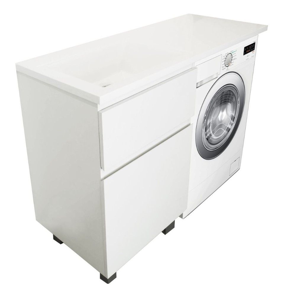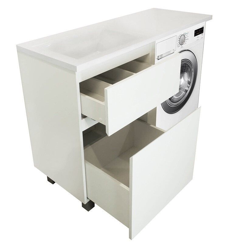 Коллекция мебели для ванной комнаты Dallas Luxe покоряет своей удивительной простой и функциональностью. Стильная лаконичная тумба, укомплектована раковиной из литьевого мрамора с удобной чашей. Стиральная машина устанавливается под столешницей, за счет чего экономит место в ванной комнате. В тумбе имеются два ящика. Нижний ящик тумбы – широкий и вместительный – предназначен для крупных предметов, а в верхнем имеется специальная организация пространства, позволяющая хранить мелкие вещи.