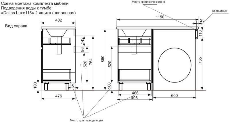 Напольная тумба под раковину Эстет Dallas Luxe ФР-00002292 Л/П 115см два ящика белый купить