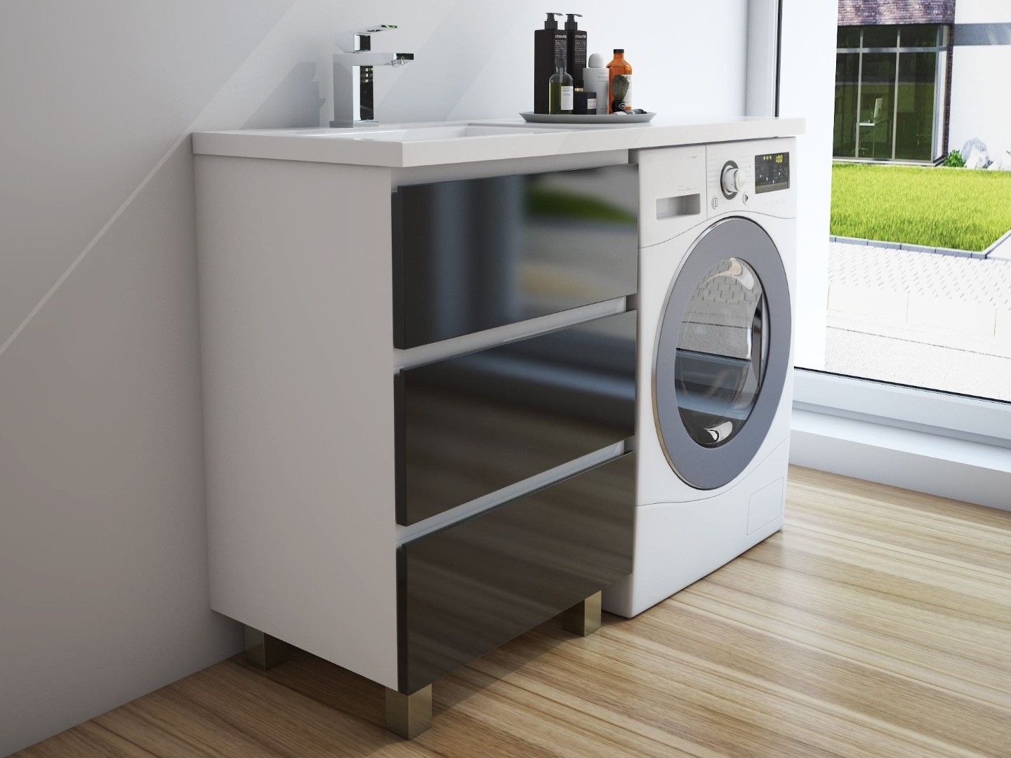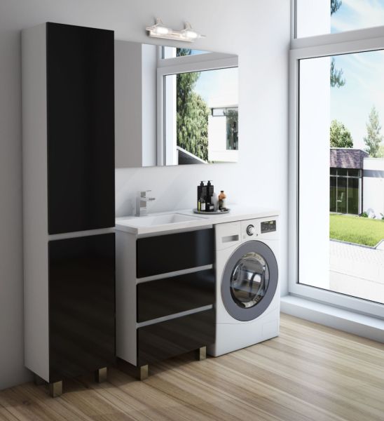 Приоритетом в выборе тумбы с раковиной является площадь ванной комнаты. Функциональная тумба с тремя ящиками решит вопрос для большинства покупателей. Стиральная машина устанавливается под столешницей. Три ящика позволят распределить как крупные, так и мелкие вещи.
