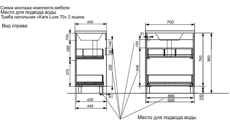 Напольная тумба под раковину Kare Luxe ФР-00007079 70см два ящика белый
