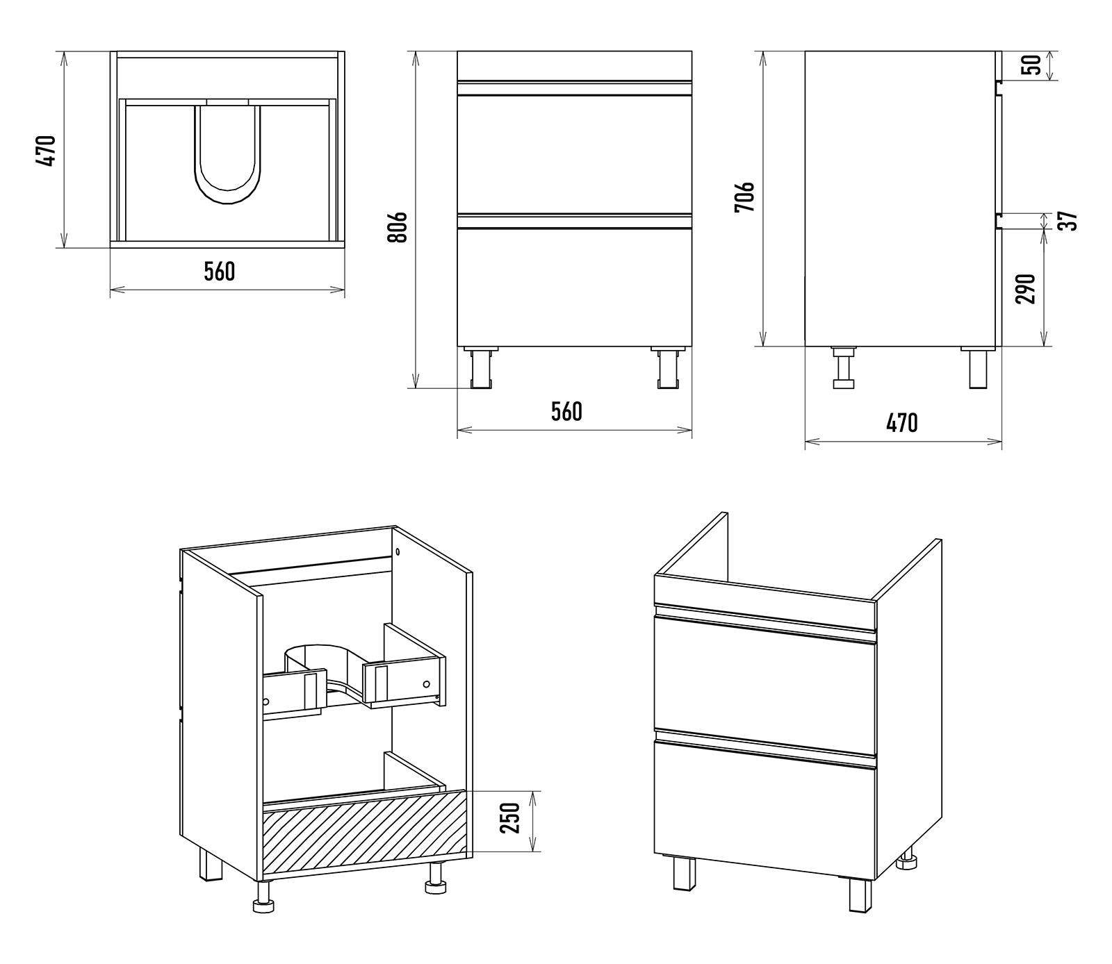 Напольная тумба под раковину Misty Ингрид П-Инг-01060-012Я 56 см белый